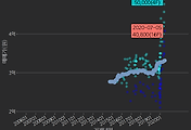 - 하단에 이어지는 거래량 막대차트(bar chart)와 함께 비교해보는 것이 좋습니다.