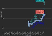 - 하단에 이어지는 거래량 막대차트(bar chart)와 함께 비교해보는 것이 좋습니다.