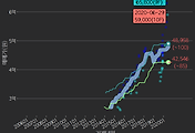 - 하단에 이어지는 거래량 막대차트(bar chart)와 함께 비교해보는 것이 좋습니다.
