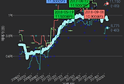 - 하단에 이어지는 거래량 막대차트(bar chart)와 함께 비교해보는 것이 좋습니다.