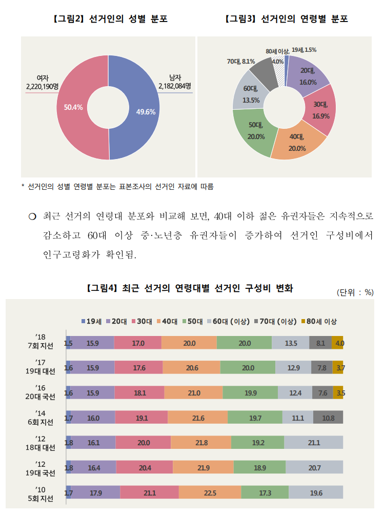 아래 캡쳐는 2018년 지방선거 기준이긴 하지만 최신의 데이터라고 보면, 절대적인 수로도 60세 이상은 26.1%인 반면 20대는 15.9%다. 게다가 절반(남자)X복무기간 2년으로 어림잡아보면 1/10(1/2*2/10)은 여러 가지 제약이 있다. 즉, 활동 가능한 20대 인구는 15.9*9/10=14.3%란 말이고, 40~50대는 합치면 무려 40%다. <출처 : 중앙선거관리위원회>