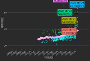 - 하단에 이어지는 거래량 막대차트(bar chart)와 함께 비교해보는 것이 좋습니다.