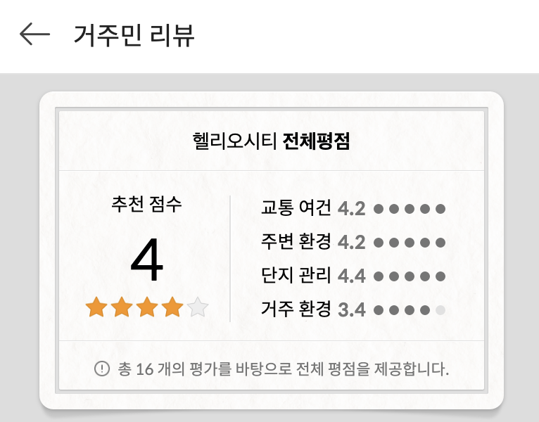 따라서, 헬리오시티 아파트에 대한 아파트 추천 점수는 4점으로 평가됩니다.
