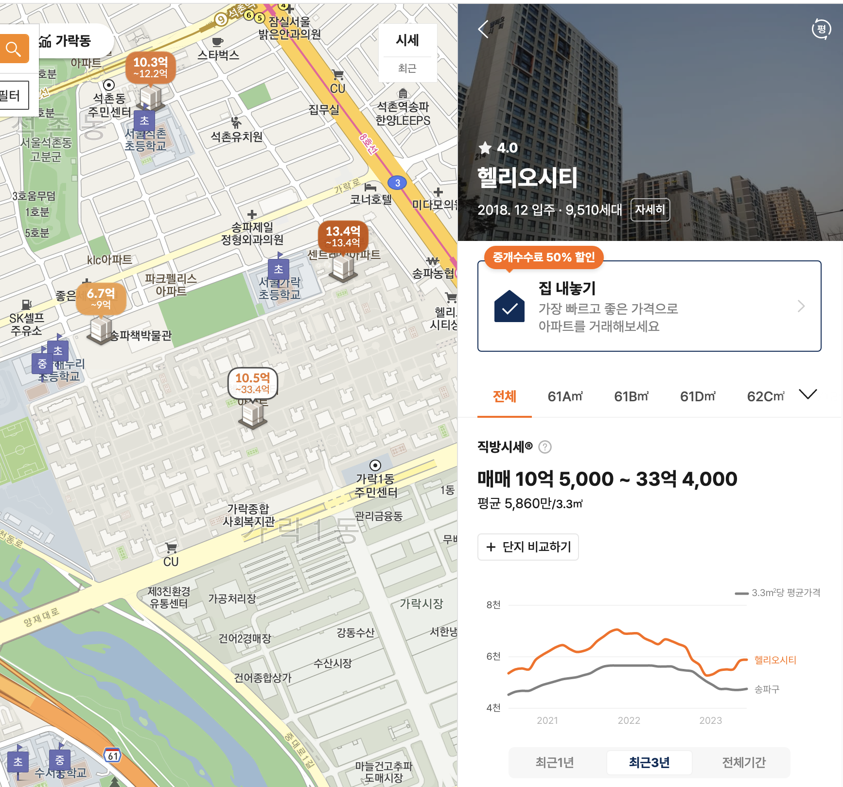 이번에 분석한 단지는 송파구에 위치한 대단지 아파트인 "송파헬리오시티"입니다. 총 9,510 세대로 구성되어 있으며, 부지면적도 넓고 다양한 편의시설을 갖추고 있습니다. 다섯 개의 정문과 지하로 곧장 연결되는 출입로로 입주민들의 출입이 편리하게 설계되어 있습니다.